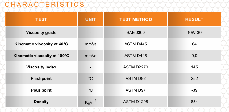 Before using the product, the vehicle's maintenance guide should be checked. Oil changes should be carried out in accordance with the manufacturer's recommendations. The product should not be stored at temperatures over 60°C. It should be kept away from sunlight, intense cold and extreme temperature fluctuations. If possible, the packaging should not be exposed to the elements. Otherwise, the drums should be laid horizontally in order to avoid any contamination from water and to prevent the product's label from rubbing off.
